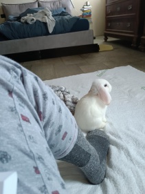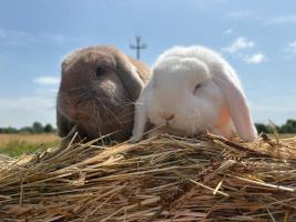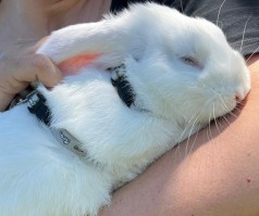 Ad inizio estate 2024 ho contattato un allevamento, "I conigli di Eleonora", vicino a casa mia per avere informazioni sul mondo dei conigli... Sono andata a conoscere così Eleonora e i suoi splendidi cuccioli ed è stato subito amore. Dopo un mese circa uno dei suoi meravigliosi cuccioli, un batuffolo di pelo bianco, è arrivato a casa Olaf. Ha subito mostrato tanta voglia di famigliarizzare e relazionare e la sintonia tra noi è stata immediata. Abbiamo sperimentato fin da subito tante attività in contesti conosciuti ma gradualmente anche nuovi sia al chiuso che all'aria aperta. In casa è poi arrivata Cookie, una cucciolina di due mesi: con lei, facendo buon uso di tutto quello che Olaf mi insegna quotidianamente stiamo crescendo insieme. Con entrambi sto costruendo un legame forte e grazie alla fiducia che si è creata tra noi, dalla primavera 2025 siamo stati certificati da una veterinaria esperta in comportamento per poter svolgere percorsi di pet therapy. Ho così iniziato a svolgere con loro nuove avventure nel mondo degli IAA, AAA ed EAA... Entrambi si stanno mostrando molto bravi offrendo dei bei momenti a tanti bambini e persone di tutte le età con storie di vita diverse.